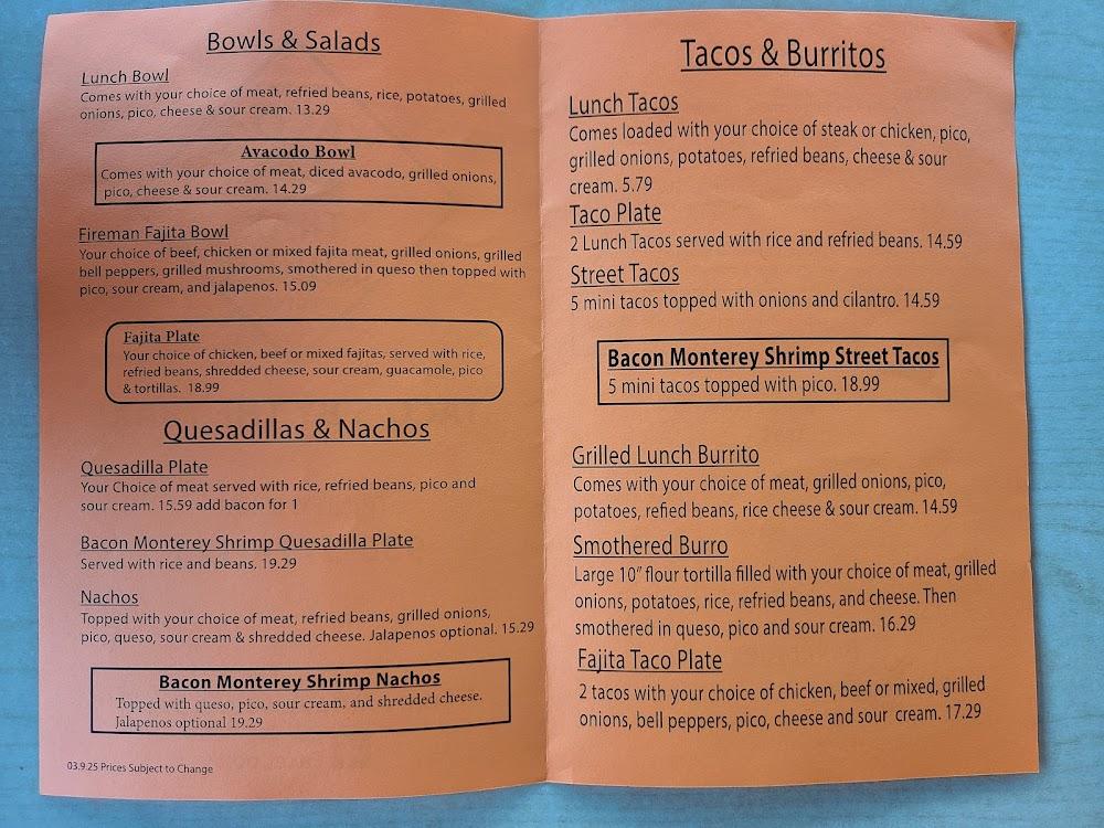 Tacos By The Trax offers classic enchiladas, quesadillas, and nachos, as well as creative options like birria and fajita bowls. Beverages include refreshing aguas frescas, coffee, and soft drinks. This menu encapsulates what makes authentic taco joints great, focusing on flavor and quality.